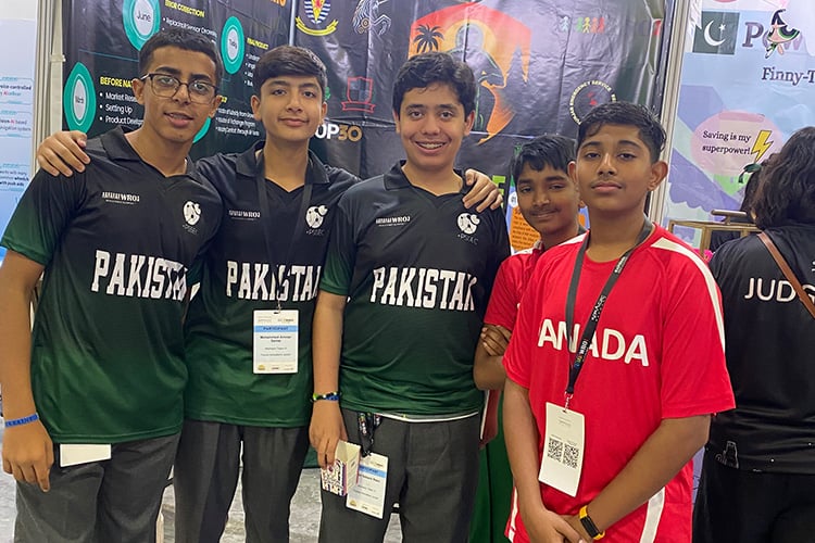 After earning a commanding first place nationally, Team A - consisting of Aahil Saleem Nasir, Arfeen Aman, and Ammar Samie advanced to the world stage, where they delivered an outstanding performance and secured an impressive fifth position worldwide.