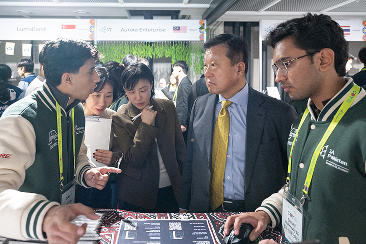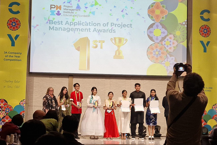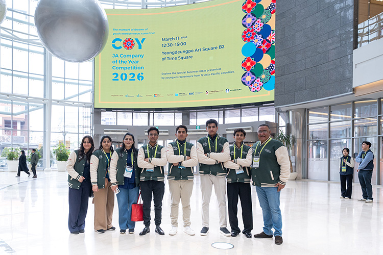 Aitchison College students bagged victory in the Company of the Year Program 2026, National Round, organized by JA Worldwide. Our students formed a company: Next Papers, which provides fully customized resources for Cambridge and other boards for students and teachers. After winning the competition at the national level, Team Aitchison comprised of Sirmed Mehmood, Hussain Nawaz, Taha Irfan, and Mohammad bin Ishaq with their mentor Ms. Nida earned a fully funded trip to Seoul, South Korea. There, they presented their company at the international level among the best teams from thirteen other countries.