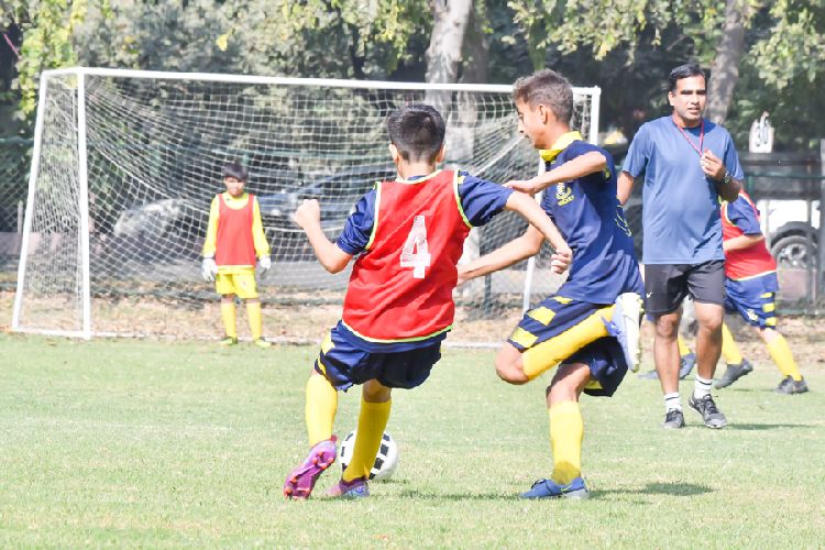 Junior Practice Football Match Among K-6 Boys